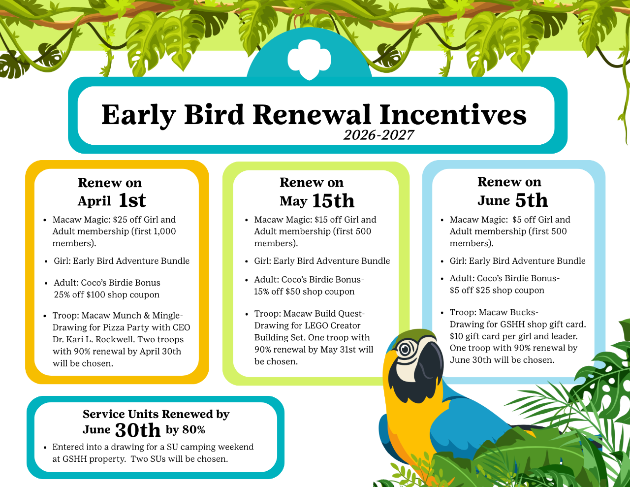 We are offering $25 off all annual Girl Scout membership for the first 1000 girls and adults who renew by April 1st!