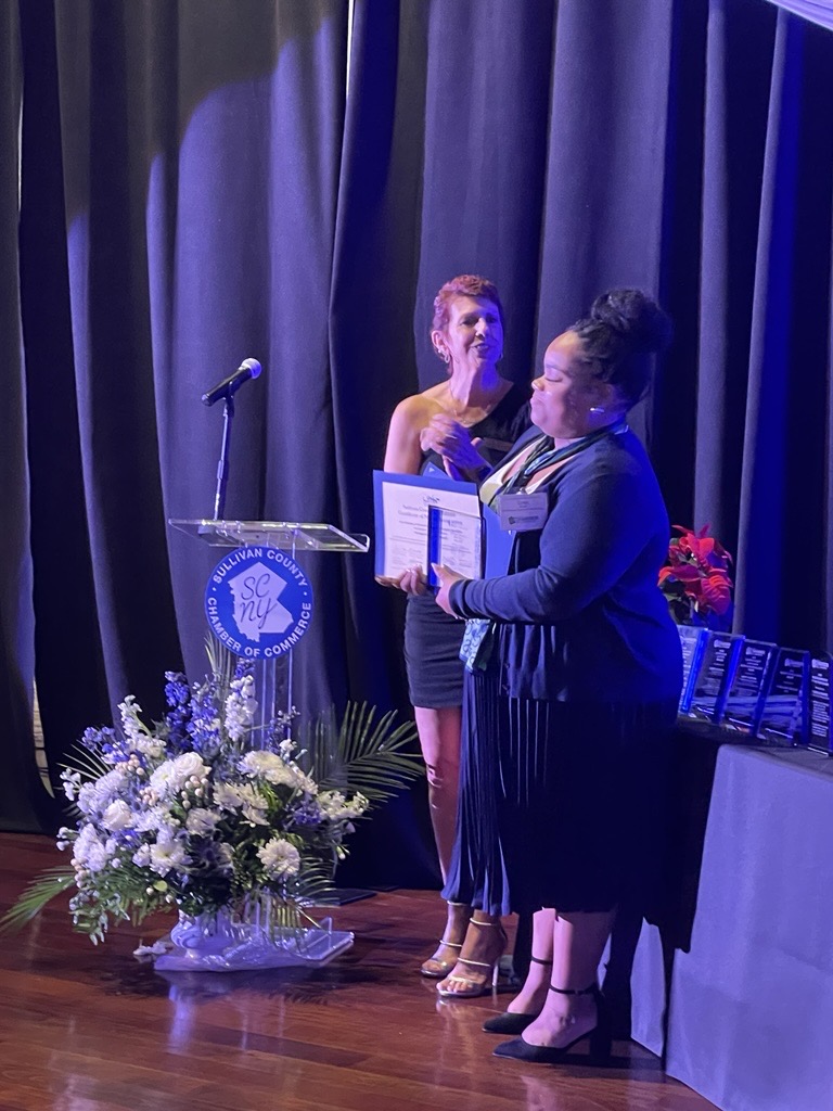 On November 13, 2025, Community Engagement Support Specialist Lynn Morales was honored by the Sullivan County Chamber of Commerce with its Distinguished Service Award. This award recognizes an individual for extraordinary community service and volunteerism.